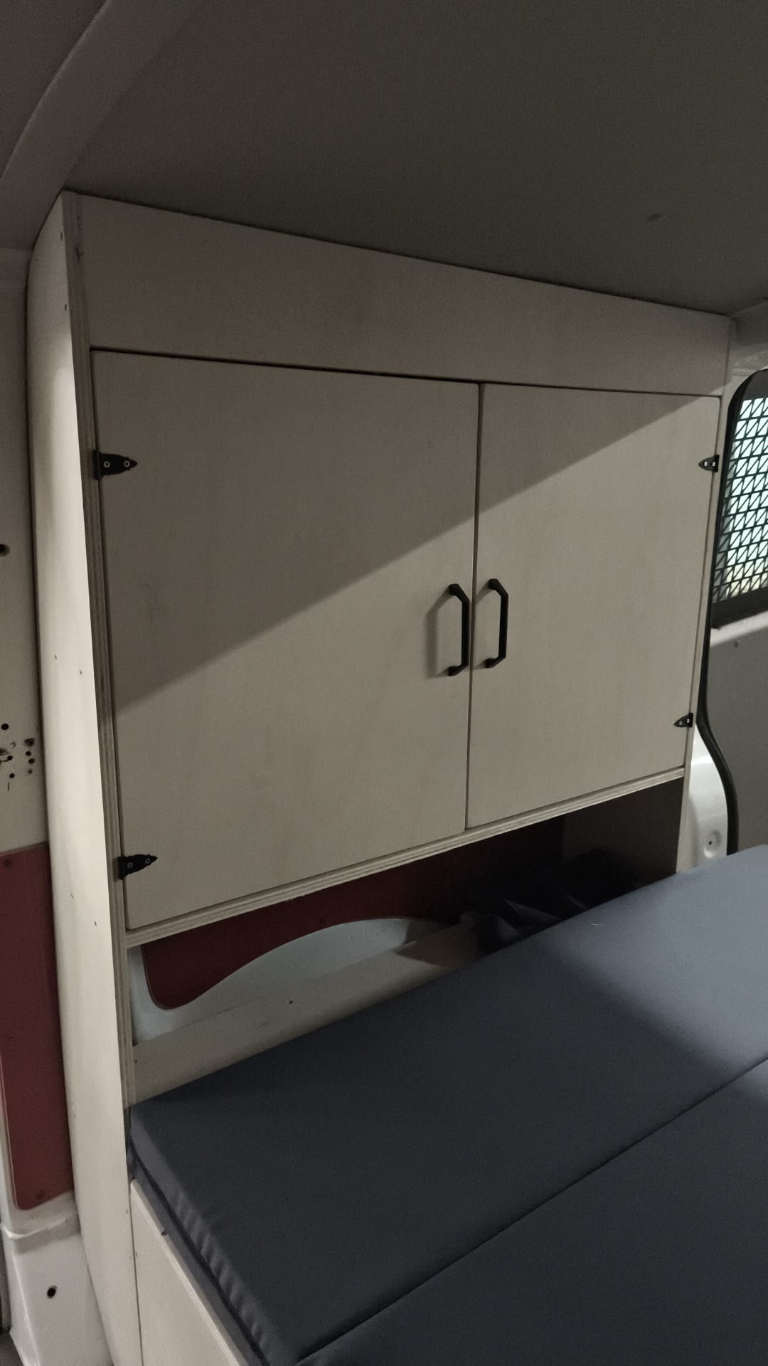• Nuova serie di Mobili da Camper in Bianco Perla con Pacchetto Materasso Grigio Scuro incluso.