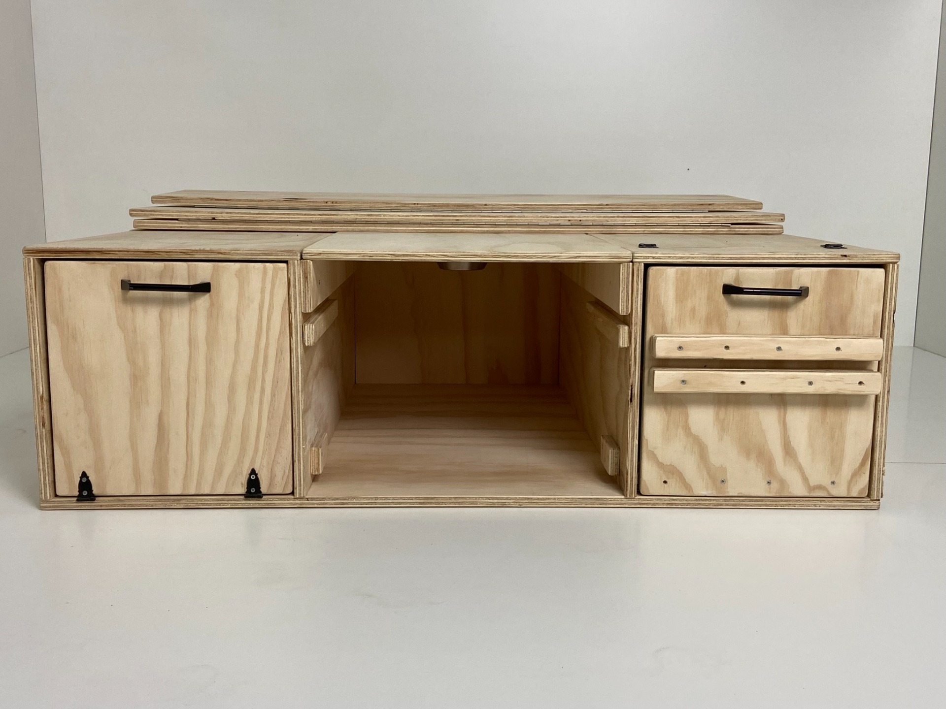 • Il Camper Furniture Kit può essere letteralmente sollevato e abbassato dal veicolo in 10,15 secondi.